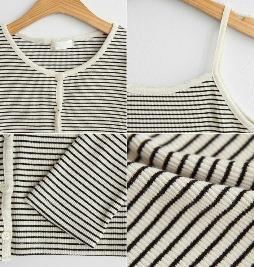 STRIPE RIBBED SLEEVELESS TOP AND CARDIGAN SET